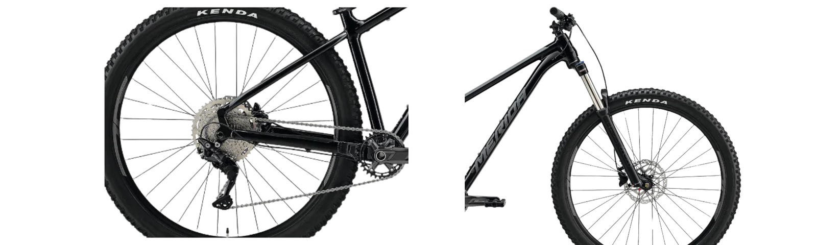 The 27.5-inch double-wall alloy rims combine strength and low weight for durable rolling on rugged trails. Merida 2.25” trail tires provide exceptional traction, grip, and stability on loose, wet, or rocky terrain. The combination of wheels, tires, and comfort saddle ensures endurance, control, and fun for all-day trail riding.