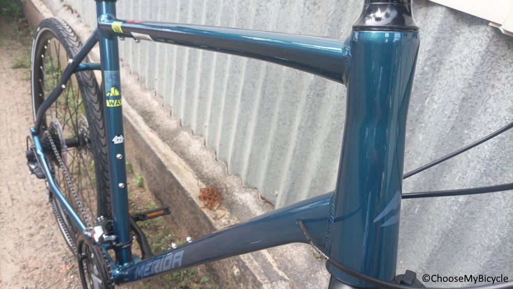 The Crossway 1 (2022) which we test rode came in a full Teal Blue frame with a lighter shade of the Teal Blue as the secondary colour for graphics and text in very few places. The slightly slanting top tube along with the thin seat and chain stays made the bicycle look aero. The gloss finish paint job was of top notch quality and enhanced the colour shade immensely. Internal cable routing would have enhanced the aesthetics of this Bicycle.