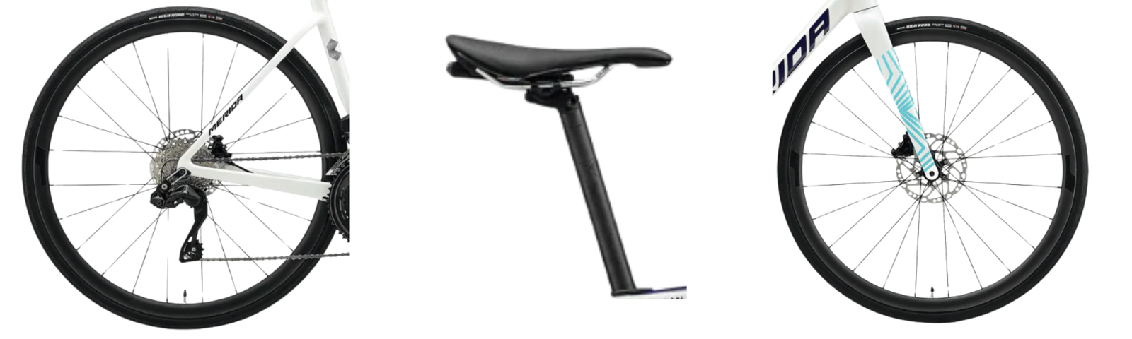 Vision SC30 carbon wheels improve aerodynamics and rolling efficiency. Tubeless-ready design reduces rolling resistance. Maxxis Highroad tyres provide strong grip and speed. Lightweight wheels enhance acceleration and climbing. Merida Expert saddle adds ergonomic comfort. Built for efficient and stable road performance.