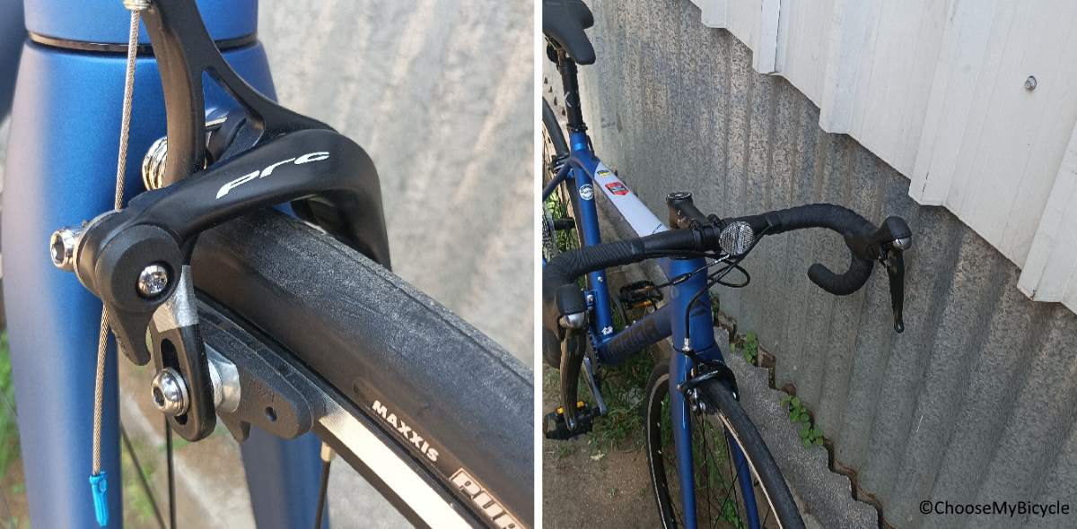 The PRC dual pivot Caliper brakes were standard road brakes with sufficient stopping power and balance