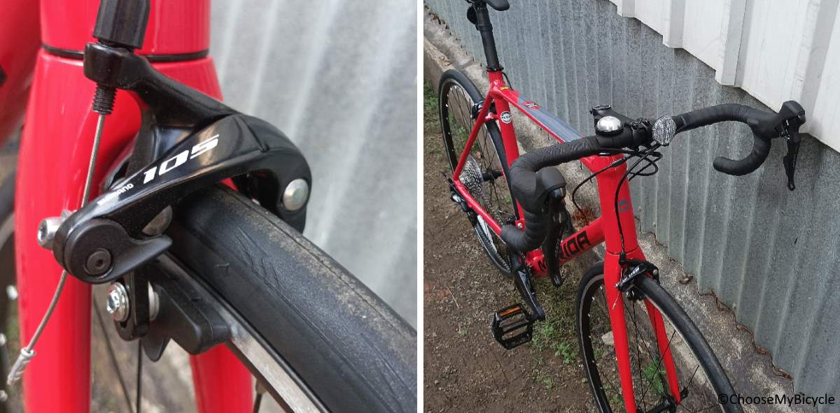 The Shimano 105 Road Caliper brakes along with the Shimano 105 levers helped brake well in both wet and dry conditions.