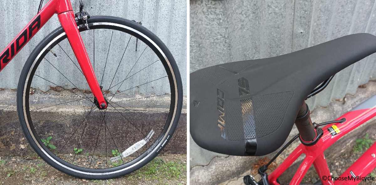 The Maxxis Pursuer 7x25C folding tires on the Scultura Rim 4 are race specific tires built to be lightweight but reliable. Maxxis have found the perfect balance in the Dolomites using technology such as their silkworm puncture protection and duel compound tread.The Merida Sport Stock Saddle was not only colour coded, but has a level of support and cushioning that suits the rider on faster rides just as much as those riding a century. The width of the saddle could have been slightly more to help during longer rides.