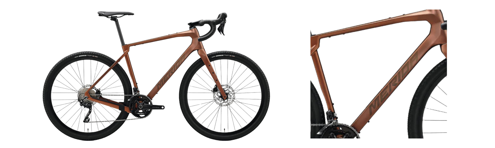 The bike rolls on Merida Expert SL tubeless-ready wheels, offering strength, smooth rolling, and excellent durability. Paired with grippy gravel tires, they provide dependable traction across dirt, tarmac, and rough terrain.