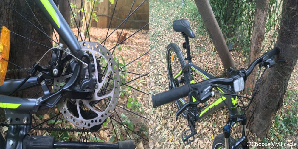 The Backbeat 27.5 (2019) which I test rode came in a Graphite Grey primary colour on the frame with Neon Yellow was the secondary colour for graphics. The dark and bright contrasting colour combination blended well. The matte finish paint job was smooth and premium in quality. The Quick Release on the front/rear wheels and seat post are useful design features, which make it easier and faster to remove/install the wheels and adjust the seat post height.