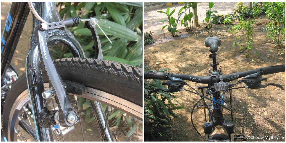 The Montra Blues 1.1 comes equipped with Promax TX-117 V-Brakes, with 11mm arms, ensuring stability of the brakes. The brakes worked efficiently, ensuring powerful braking while staying stable. Both Interval braking and abrupt braking felt secure and solid. The Alloy Brake Levers were placed well within reach, requiring only two or three fingers to operate. The brake levers required only a light pull to ensure effective braking. These brakes work effectively on both wet and dry surfaces. However, it might require some extra force while on wet, slippery surfaces. The XMR Zoom Alloy 62mm handlebar on the Montra Blues 1.1, ensures a comfortable ‘open-chested’ riding position. Additionally, the width of the handlebar enables superior control and maneuverability of the bicycle in traffic and crowded riding conditions. The handlebar grips were fairly cushioned and worked well to ensure minimal transfer of vibrations from the handlebar to the hand and arms while riding.