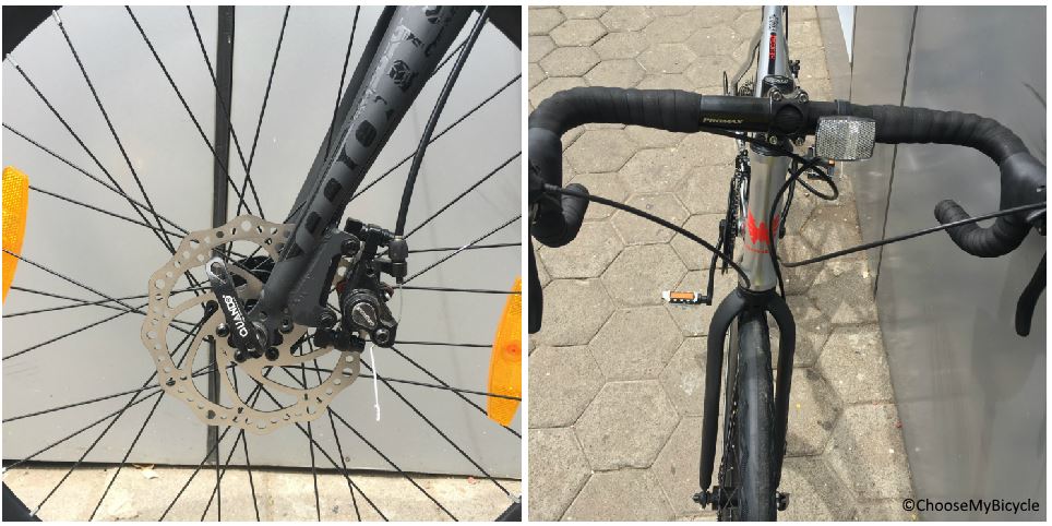 The Helicon X came which we test rode came in a full chrome colour with black and red graphics. The hexagonal shaped pattern on the top tube adds a stylish outlook to this bicycle. A minor setback on this chrome colour was that the paint job wasn’t of the best quality. That being said this is one good-looking bicycle with road bicycle characteristics and the deep-dish like designed wheels enhance the overall aesthetics