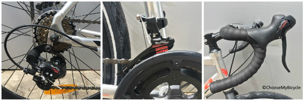 The Shimano Tourney 2x7 Speed derailleurs were entry level and easy to shift using the integrated shifters