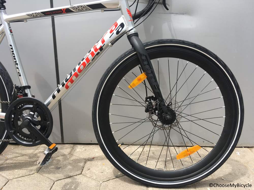 The Kenda K1176 tires on the Helicon X measured 27.5” x 1.75”. These tires are similar in threading and size when compared to the Helicon Disc hybrid bicycle. These tires had good rolling resistance on urban roads with occasional bumps and speed breakers. The XMR alloy frames were deep-dish like and aero in shape with good strength to support the tires. The Montra Commuter saddle was comfortable but would need some extra cushioning in the form a gel seat cover or a padded shorts for those longer weekend rides.