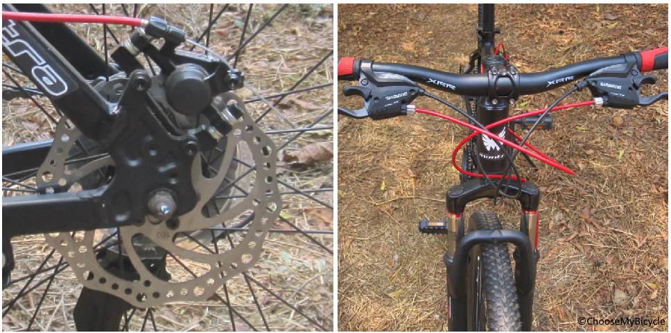 The Montra Madrock 26"" comes equipped with Logan LG-3 Mechanical Disc brakes. The brakes worked efficiently, ensuring powerful braking while staying stable. Both Interval braking and abrupt braking felt stable and safe. The Shimano EF-5 Alloy Brake Levers were placed well within reach, requiring only two or three fingers to operate. The brake levers required only a light pull to ensure effective braking. These brakes work effectively on both wet and dry surfaces. The XMR Alloy 68mm handlebar on the Montra Madrock 26"", ensures a comfortable ‘open-chested’ riding position. The width of the handlebar enables enhanced stability on rugged flat trails and rough surfaces. The handlebar grips were fairly cushioned and worked well to ensure minimal transfer of vibrations from the handlebar to the hand and arms while riding. However, I feel that the handlebars could do with a bit more cushioning to provide that extra comfort while handling the bicycle on rugged trails.