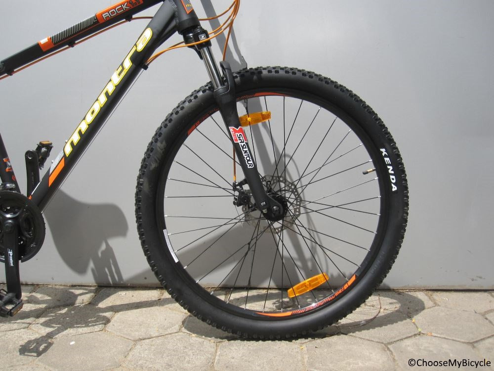The Montra Rock 1.1D (2017) is built on a 661 alloy hardtail frame. This 661 alloy frame has a higher tensile strength with tapered single butted tubes. The top tube has a smaller diameter on the top when compared to the bottom; this obtains a higher resistance in this area of the frame, a higher rigidity and a better stability of the bicycle. The frame geometry was aggressive and helped be in control on trails.The Rock 1.1D (2017) comes with a SR Suntour M33 front suspension forks. During the test ride this suspension fork performed well to tackle all the bumps. The 75mm travel sure did work to its limit. This suspension fork also comes with a preload adjuster.