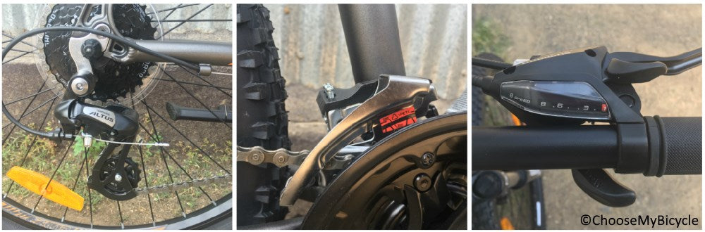 The 24-Speed Shimano Altus drivetrain worked smoothly on flat trails.