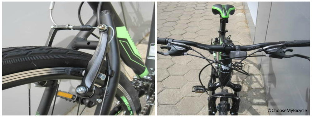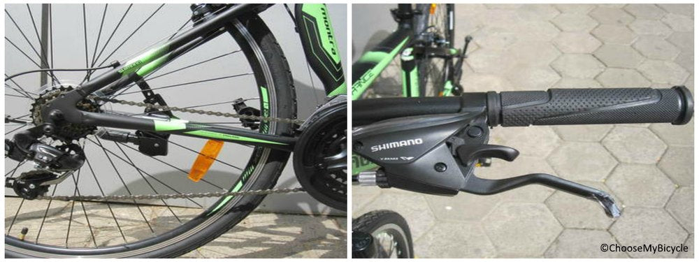 The Trance (2017) comes with Shimano Tourney gearing at both the front and rear. These derailleurs are basic MTB gearing components which is a common practice on hybrid bicycles. These derailleurs worked well during the test ride. They transmitted quickly at both the front and rear. There were no slips or delay in the gear shifts. The shifting was a bit noisy though. The Shimano ST-EF5 21 speed shifters felt comfortable to use and were in easy reach for the hands from the handlebar grips.