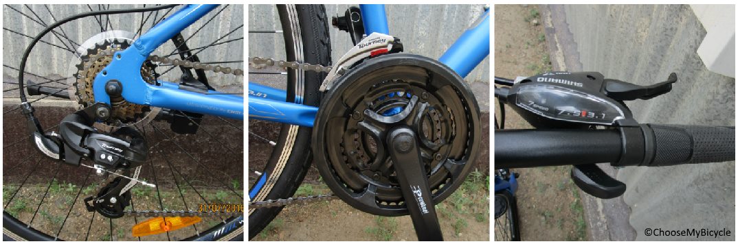 This Trance 218 like the other variants is also equipped with Shimano Tourney derailleurs at both the front and rear. These derailleurs were just enough for the short commutes and the leisure long rides. There were no major negatives in the gear shifting department which was assisted by a 21-Speed Shimano EF-5 trigger shifters. Tourney's are the most basic gearing component for a bicycle and for the price of this bicycle and its characteristics, an Altus upgrade would have been a major positive.