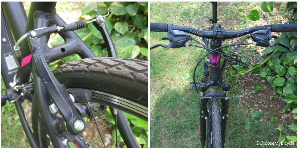 The Montra Trance W comes equipped with Power alloy V-Brakes. The 11mm arms ensure that the brakes are well balanced and level, even over time with regular usage. The brakes were responsive and had adequate stopping power with interval braking and abrupt braking. The ST EF-5 Brake Levers were well placed, well within reach, requiring two to three fingers to operate. The brake levers required only a light pull to ensure effective braking. These brakes are sure to work effectively on both wet and dry surfaces. The XMR Zoom Alloy 62mm handlebar on the Montra Trance W, ensures a comfortable ‘open-chested’ riding position. The width of the handlebar allows for increased control and maneuverability of the bicycle, even in severe traffic and crowded riding conditions. The grips on the handlebar are comfortable and well cushioned, and work well to absorb vibrations felt from rugged roads transferring minimal vibrations to the palms and arms.