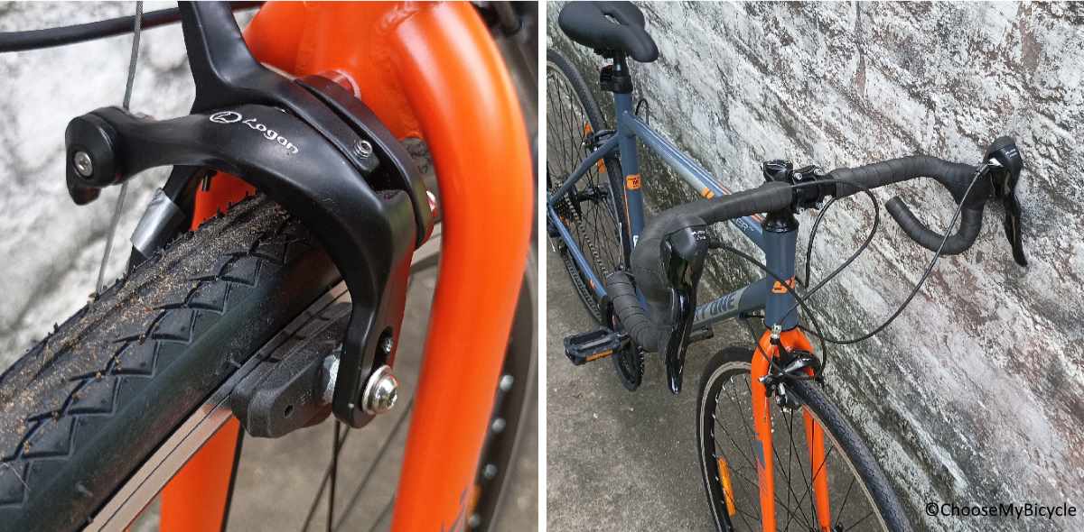 The Logan branded Road Caliper brakes on the Ninety One Tracer R14 were sufficient for all braking needs on flat tarmacs. The brakes felt balanced and sufficient in stopping power.The drop handlebar was wide enough to give great steering control and easy access to the paddle shifters and brake levers.
