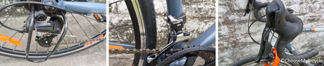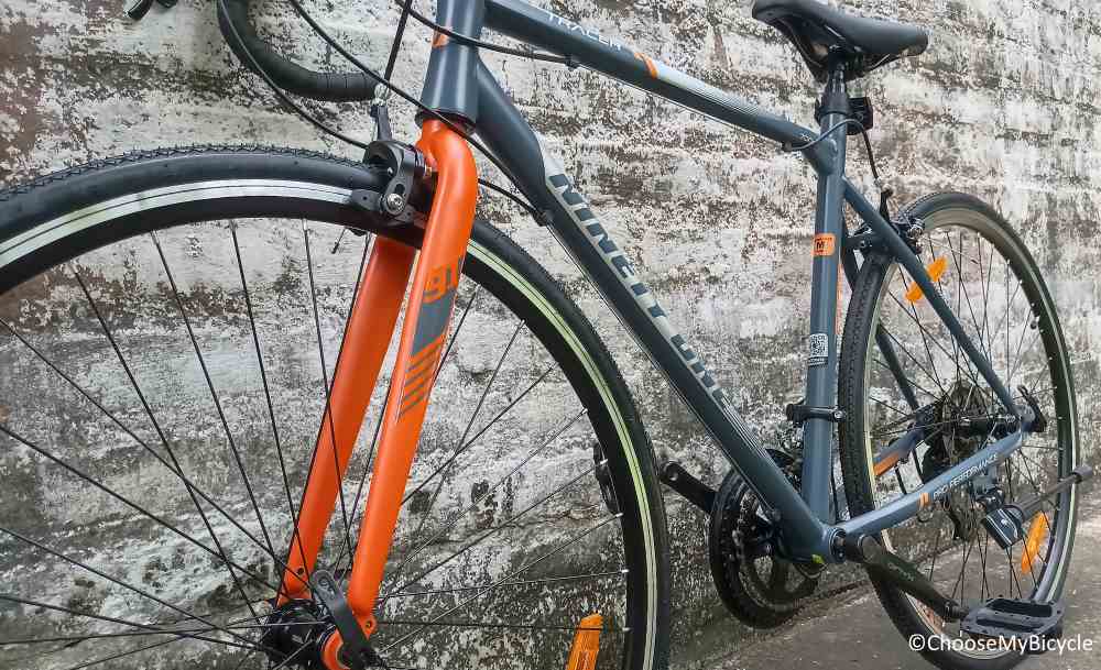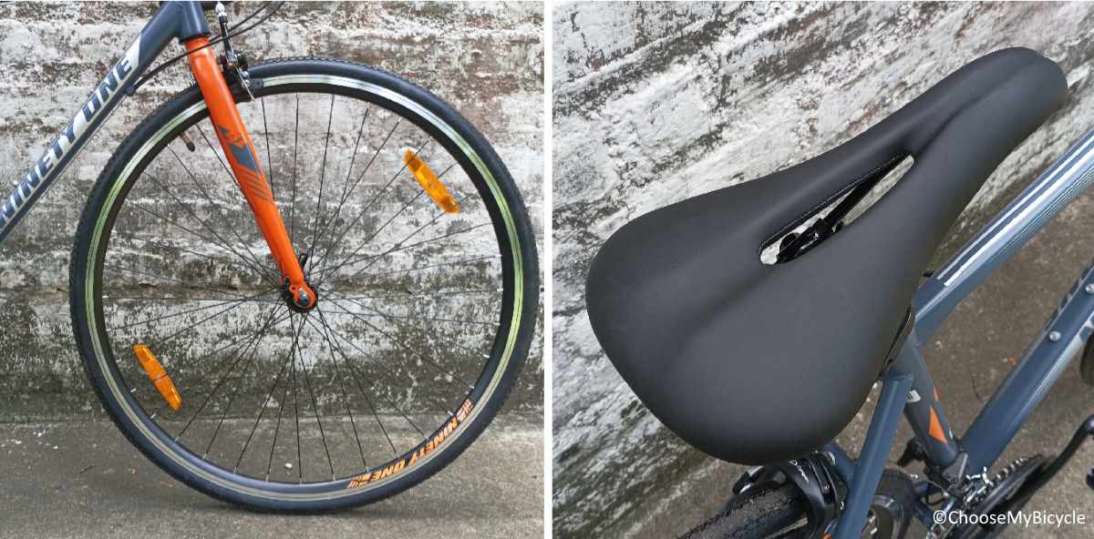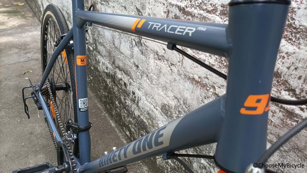 Ninety One have experimented with various graphics and designs in their vast range of Bicycles. The Tracer R14 Road Bicycle which we test rode came in a full Grey frame with Orange and Silver as the secondary colours for the graphics and text. The matte finish paint job was smooth and neatly done. The sleek tubes and neat graphics definitely enhanced the aesthetics of this Bicycle.