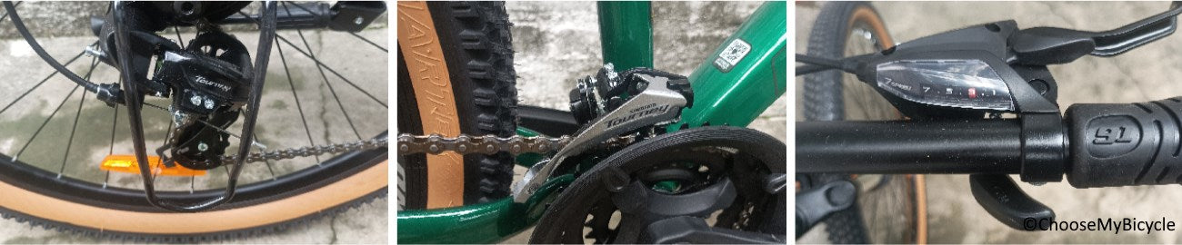 The Shimano Tourney 21-Speed derailleurs were sufficient for quick and smooth gear shifts