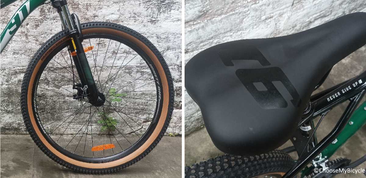 The 29” x 2.4” Hartex branded MTB tires on the Ninety One Windrider Multi-Speed was heavily treaded to generate a lot of traction on rough surfaces. The 29” circumference made it easy to ride over rough trails and urban roads.The stock saddle was wide and had enough cushioning to keep the rider comfortable on bumpy rides.