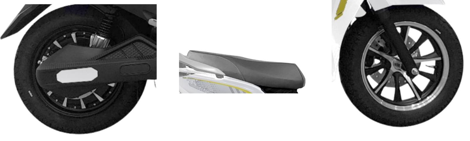 Alloy wheels enhance durability and visual appeal. Tubeless tyres improve grip and reduce puncture risks. Wheels are designed for city road conditions. The saddle is wide and well-cushioned. Suspension and tyres work together for smooth riding. Built for daily commuting comfort.
