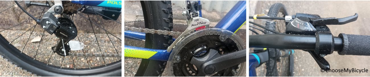 The Shimano Tourney 21-Speed derailleurs are entry-level and come with trigger shifters.
