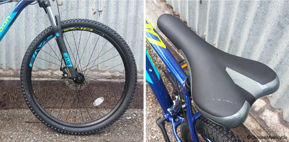 The Deli 27.5” x 2.1” MTB tires on the Cascade 2 (2022) are heavily treaded and performed well during the test ride. The bulky treads help maintain traction on dry and wet surfaces and on fast corners as well.The stock saddle was not just great on the design front but also perfect with its size to make sure the rider is free from saddle soreness.
