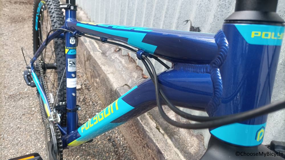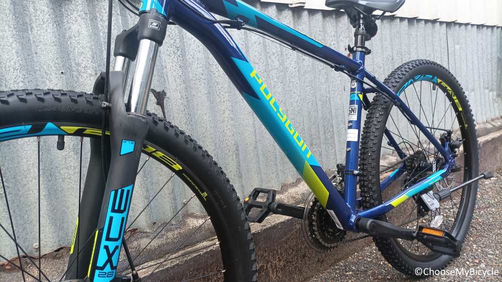 The Polygon Cascade 2 (2022) is an MTB built on a top notch AL6 XC Alloy frame. These tubes used for the frame aren’t as bulky but can take a good amount of hard hitting of moderate trails. The thin seat and chain stays surely makes the frame a lightweight one, which helps in acceleration. This is a Hardtail MTB and comes with a XCE28 front suspension fork with a 1mm travel. During the test ride, the travel worked comfortably with more than sufficient travel for rough urban roads and good enough for flat trails.