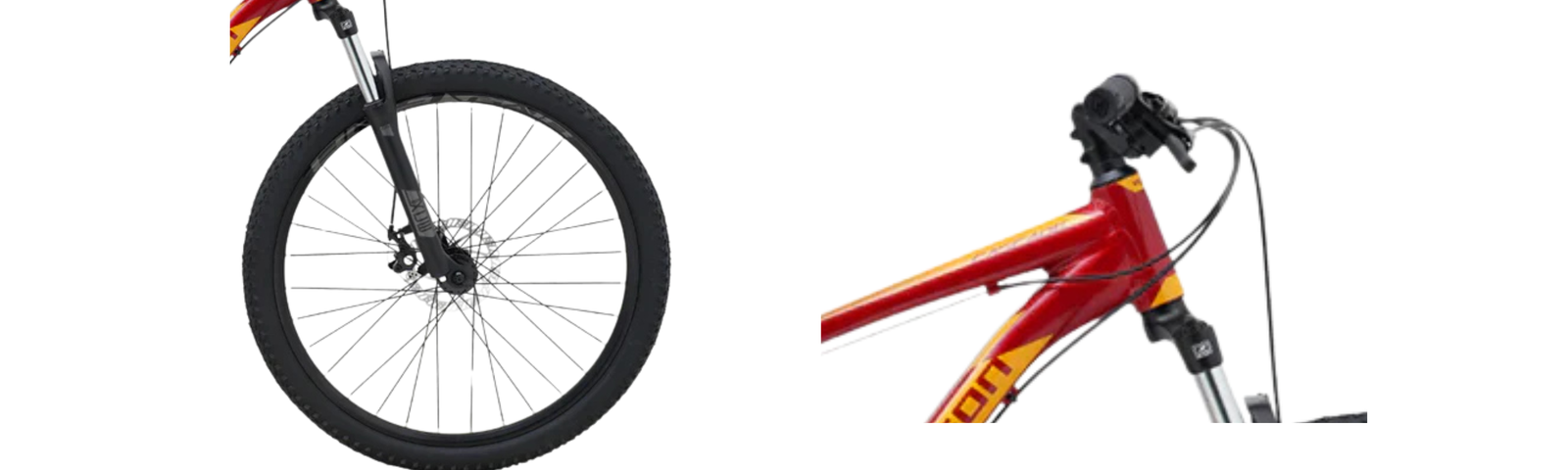 27.5" double-wall alloy rims and are paired with 27.5" x 2.1" heavily treaded MTB tires