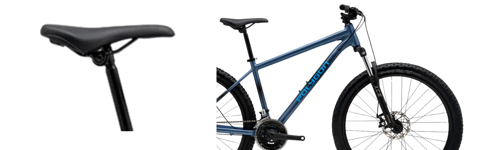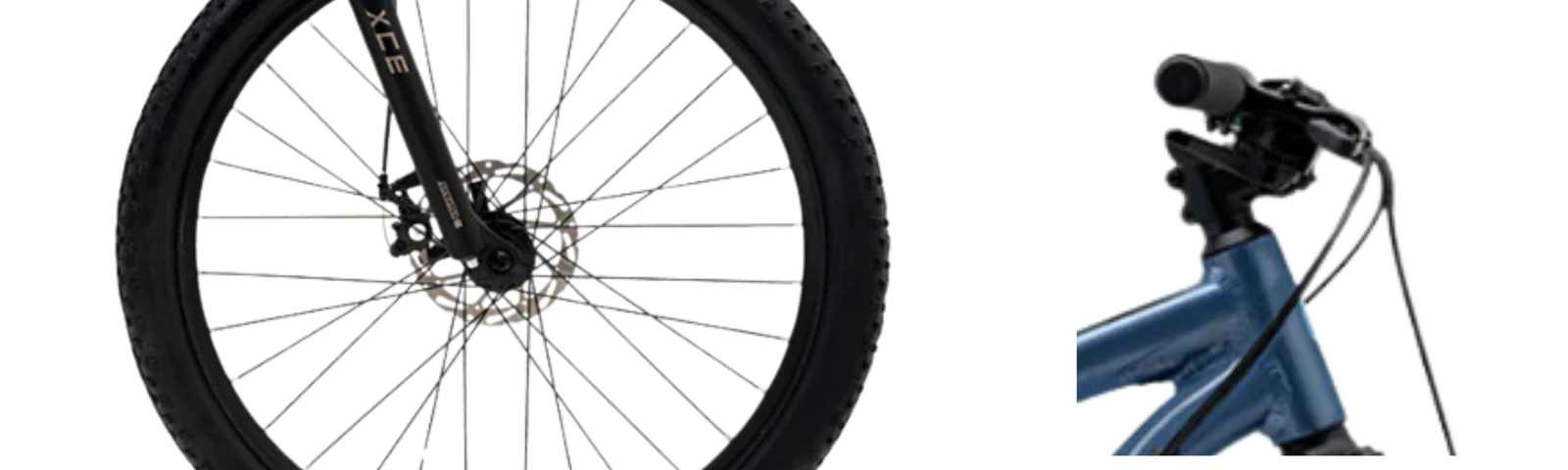 Suntour XCE28 suspension fork absorbs minor bumps effectively. Upright riding position reduces strain on the back. Wide tyres improve stability and grip. Comfortable MTB saddle supports longer rides. Ergonomic cockpit setup minimizes fatigue. Designed for relaxed and comfortable cycling.
