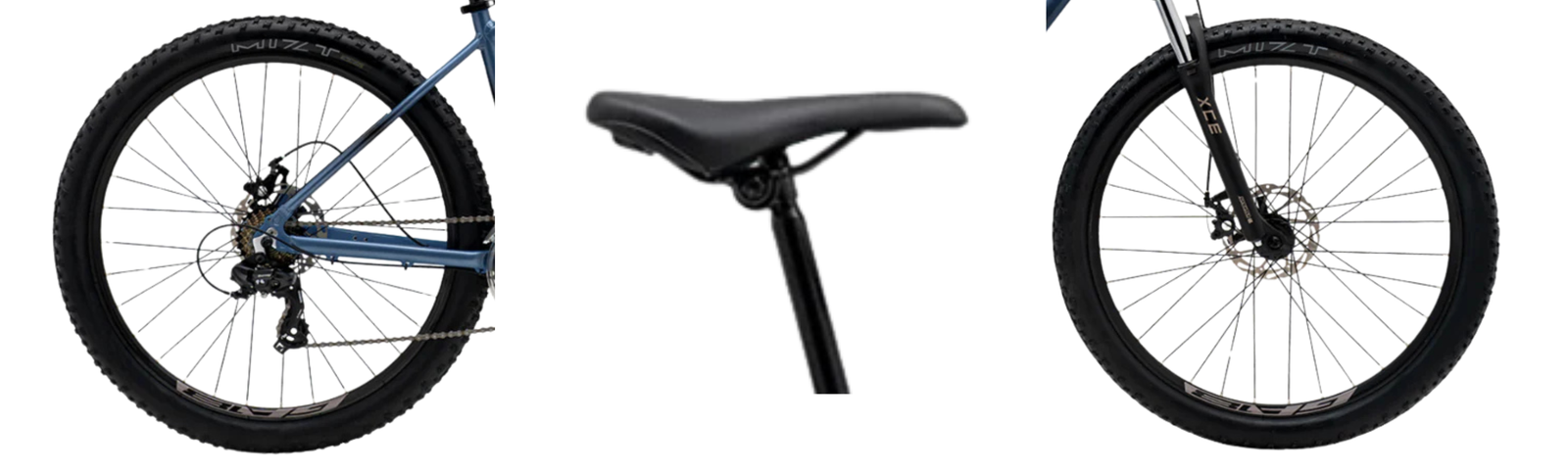 Double-wall alloy wheels provide durability for daily riding. 27.5-inch wheel size balances agility and stability. Deli tyres improve traction on mixed surfaces. Strong spoke construction enhances reliability. Comfortable saddle improves ride experience. Built for dependable everyday performance.