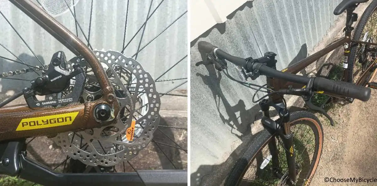 Shimano’s MT400 Hydraulic Disc brakes handle the braking performance on the Polygon Heist X7 (2022). These brakes were powerful and balanced on urban roads and felt safe to use even at top speeds. Hydraulic Disc brake from Shimano is a top notch component in this category.