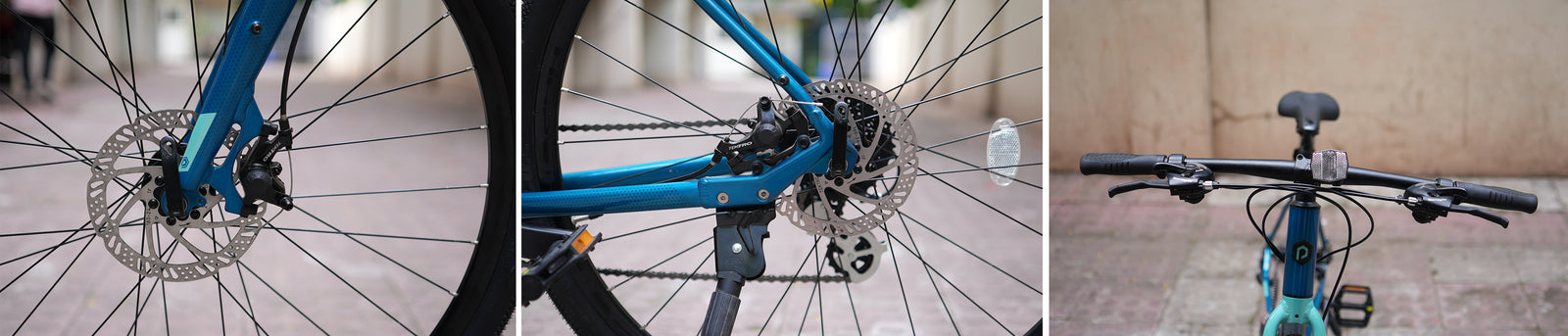The Mechanical disc brakes on the Polygon Path 2 are a standout feature, offering exceptional stopping power and control. Whether it's sudden stops in traffic or controlled descents, these brakes provide the confidence and security needed for urban riding. The hydraulic system ensures consistent performance in various weather conditions, making it a reliable choice for all-season commuting.Steering on the Path 2 is precise and responsive, thanks to the rigid alloy fork and well-designed handlebar setup. The bike handles corners and tight spaces with ease, allowing for agile maneuvering in busy city environments. The overall steering experience is smooth and intuitive, contributing to the bike's user-friendly nature.