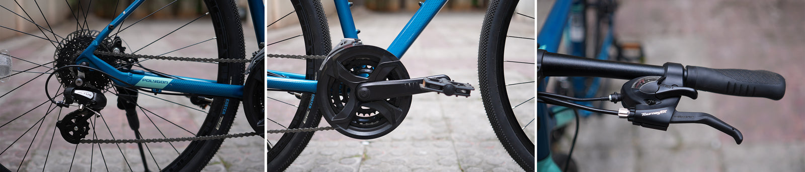 Equipped with a Shimano Atlus, 8-speed drivetrain, the Polygon Path 2 offers reliable and smooth shifting. The gear range is well-suited for city riding, providing enough options to tackle both flat terrains and moderate inclines. The Shimano components are known for their durability and performance, ensuring that the bike maintains its efficiency over time. However, for those looking for higher-end performance, the entry-level Shimano Atlus might feel a bit basic. Nonetheless, it serves the purpose well for daily commuting and casual fitness rides.