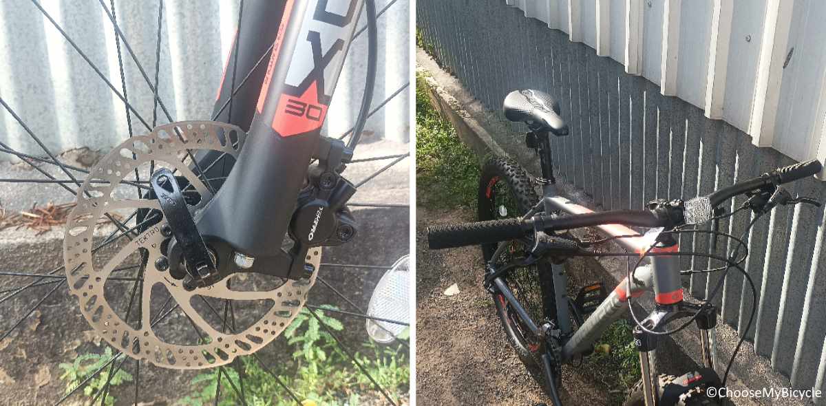 The Premier 4 (2022) which I test rode came in a Matte Grey primary colour with Orange as the secondary colour for graphics and text. The sleek chain and seat stays looks elegant. The graphics were simple yet bright with a colour coded fork, saddle and rims. The lengthy handlebar and heavily treaded tires gave this Bicycle the perfect rugged MTB looks.