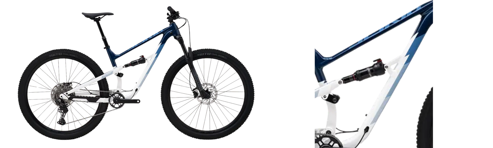 Full Suspension: 120mm of travel front (RockShox Recon Silver RL) and rear (RockShox Deluxe Select Plus) effectively absorbs bumps and chatter on the trail, significantly reducing rider fatigue compared to a hardtail.