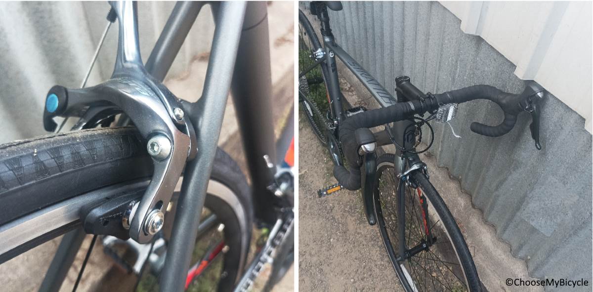The Tiagra Caliper brakes were powerful and balanced on flat tarmacs