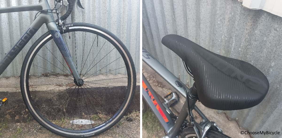 The Kenda 7x28C road tires were perfect for racing and climbing on smooth tarmacs. The rubber compounds were strong and does give a long life, thus making it value for money. The Entity stock Saddle was designed ergonomically for an Endurance Road Bicycle to make sure the rider can be seated for long hours without experiencing any soreness.