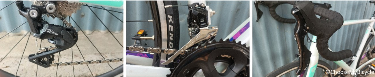 The Strattos S5 is equipped with Shimano's 15 groupset at the front and rear as derailleurs. 15 is considered the beginning of top end derailleurs for racing. This 15 groupset has some similar characteristics as its bigger counterparts in terms of design and build. The shifting was quick and responsive during the test ride.