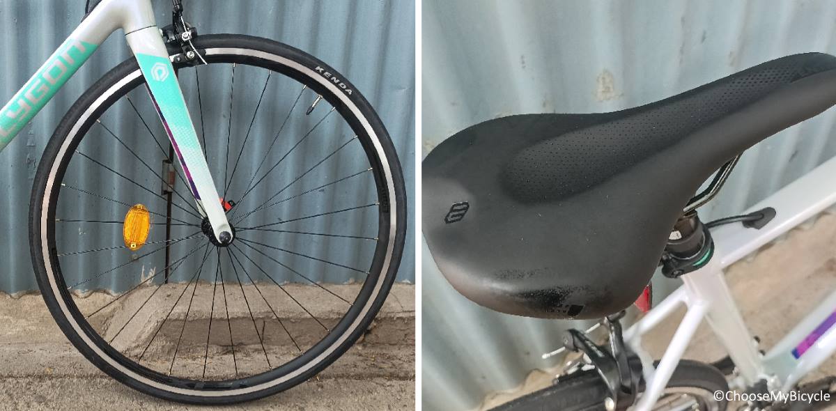 The Strattos S5 rolls on a pair of Kenda 7x28C road tires which were ideal for racing and climbing on smooth tarmacs. The rubber compounds were strong and does give a long life, thus making it value for money.The Entity Saddle is designed ergonomically for an Endurance Road Bicycle to make sure the rider can be seated for long hours without experiencing any soreness.
