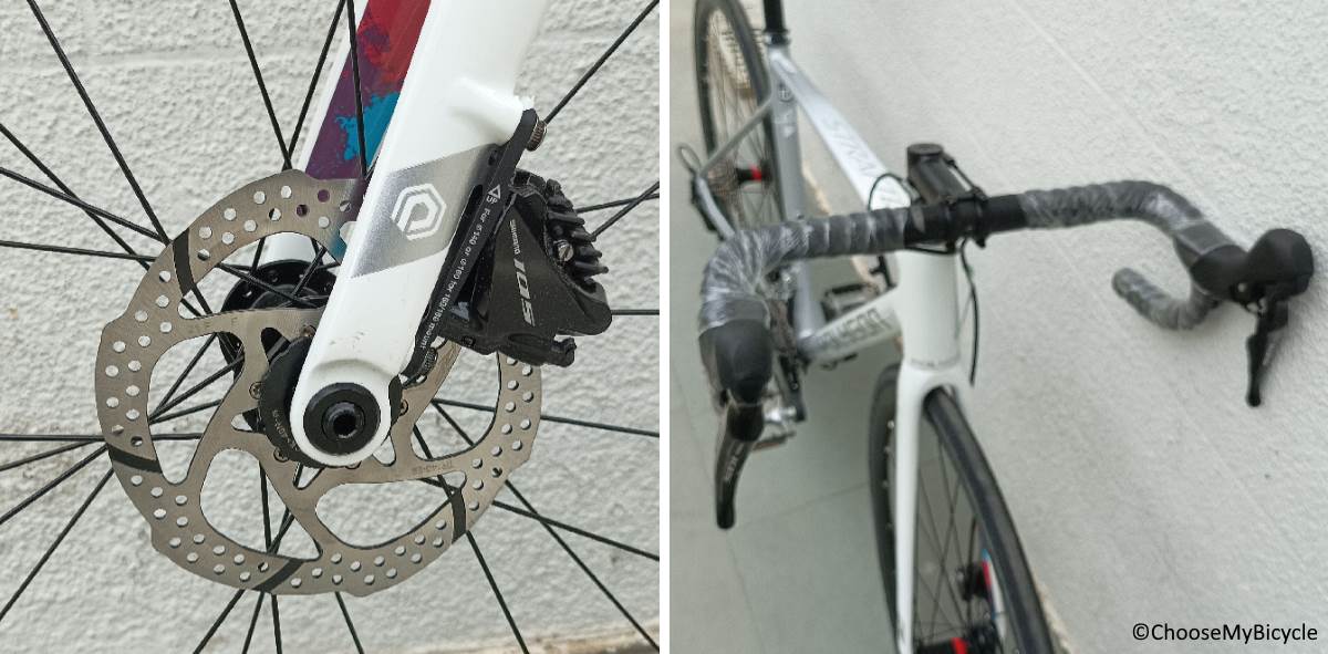 The Strattos S5D also follows the pattern of having a complete groupset to handle not just the gears but the brakes as well. The Shimano 15 BR-R77 Hydraulic Disc brakes were as powerful as they get and had impressive stopping power on flat tarmacs which were both dry and wet.The Entity Sport drop handlebar on this Bicycle was comfortable on the hoods and drops. The bar tape was grippy even with wet hands and gloves.