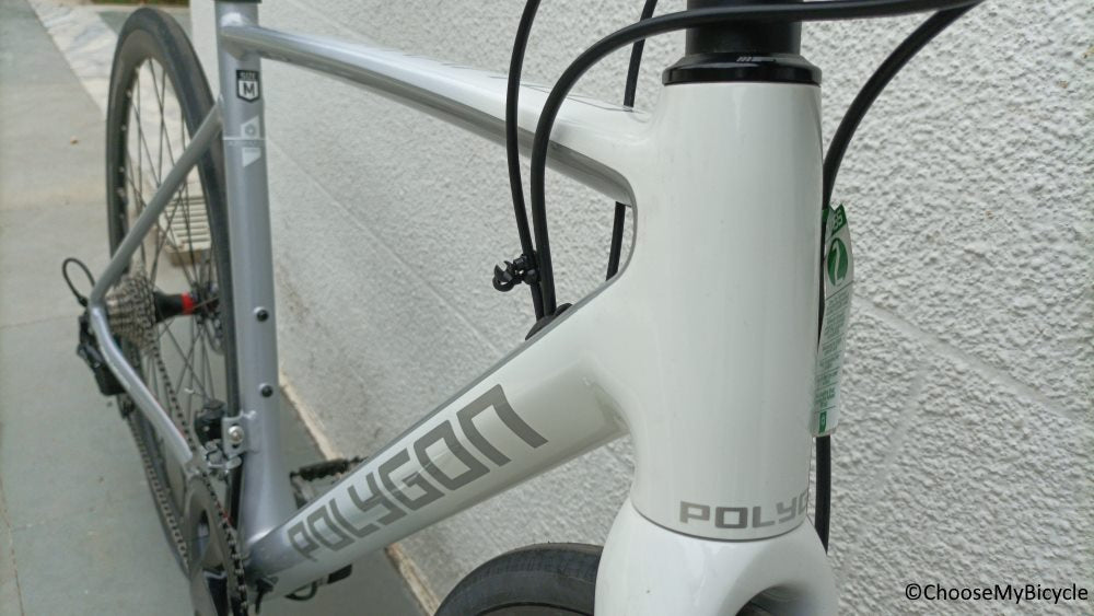 This Road Bicycle from Polygon which we test rode came in a dual shade of White and Light Grey. The creamy shade of Gloss White on this frame was unique and looked refreshing. Internal cable routing for the gears made sure the Bicycle looked neat and also increases the life of the cables.