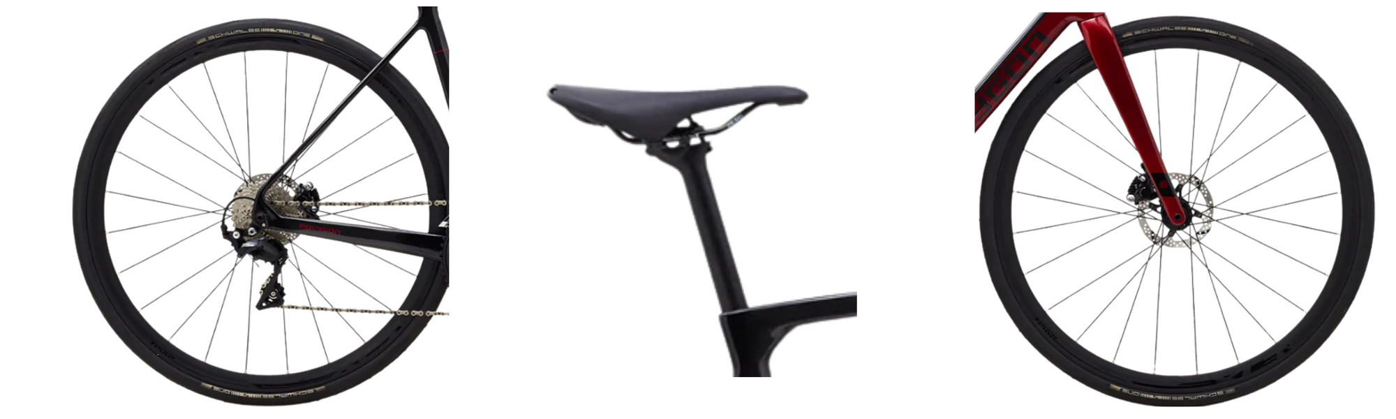 The standout upgrade — Shimano 105 hydraulic disc brakes. They deliver powerful, smooth, and confident braking in all conditions, wet or dry. The stopping power complements the bike’s handling: precise, composed, and agile.