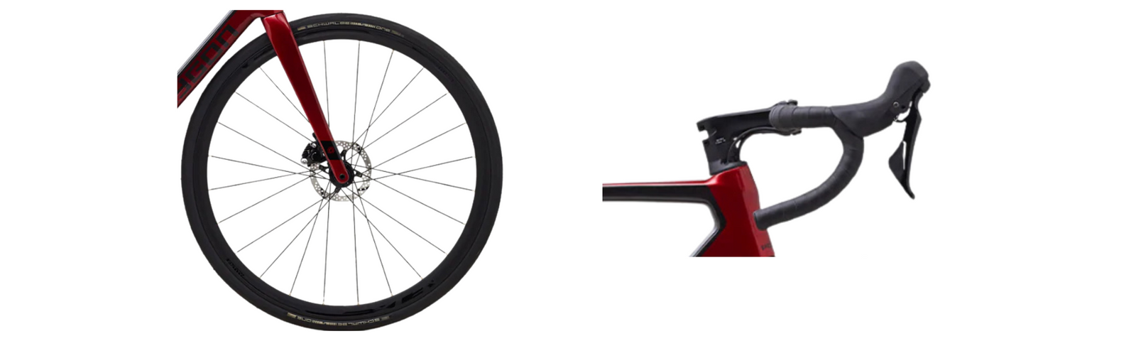 The stock Schwalbe ONE 700x28C tyres give a good balance of speed and comfort. Indian riders might consider upgrading to 30mm tubeless tyres for added cushioning and puncture protection, as the rims are tubeless-ready. The saddle (Flux2, CR-MO rails) is comfortable for mid-range distances, though endurance riders may prefer swapping to a more custom fit.