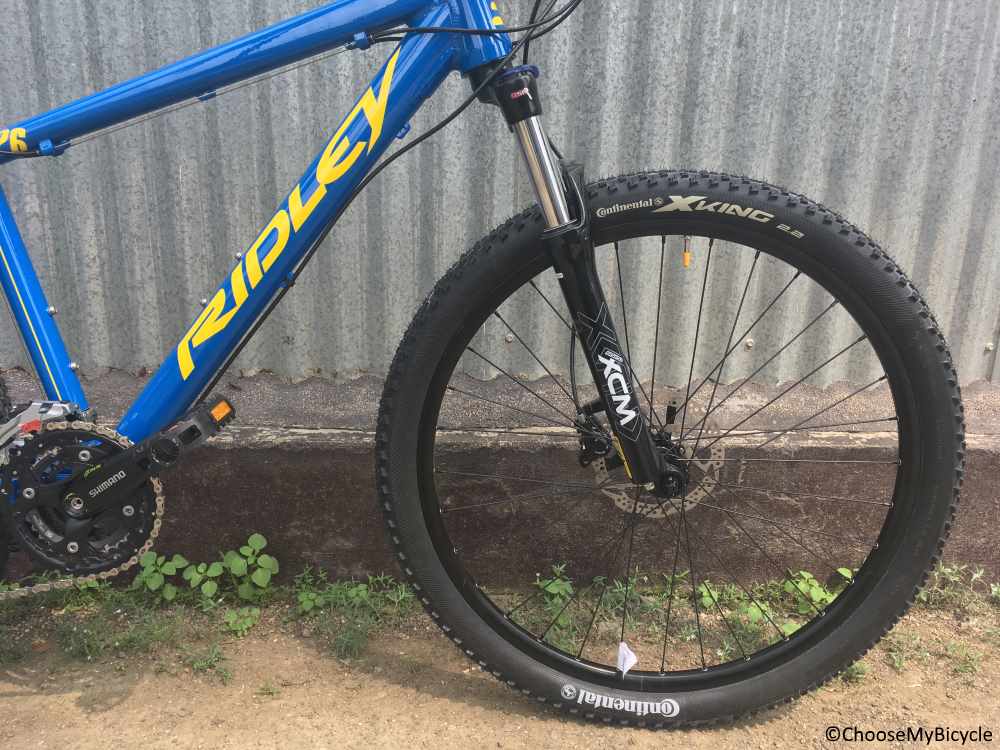 The Ridley Blast 26 has a butted hardtail aluminium frame. The frame geometry was perfect for flat trails, thanks to its strongly welded tube joints which make it absorb vibrations of the surface to make the ride comfortable. The riding posture has the ideal mix of aggressiveness and comfort for both urban and trail rides. For an MTB, the frame does feel lightweight and helps in riding fast on flat single tracks and roads.The front suspension from Suntoun XCM comes with a smoothly working 1mm travel which made the ride on bumpy trails easier. The hydraulic suspension lockout is a very useful feature to make the suspension rigid and in turn making your ride faster on flatter surfaces.