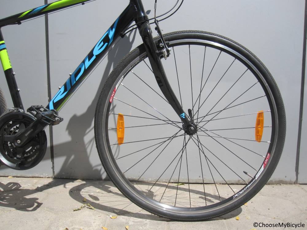 The Ridley Cordis 2 comes with a 661 alloy frame. The frame has neatly welded tubes, which are thin. The frame geometry is a perfect mix of comfort and aggressiveness needed to ride in the city. The frame was light enough to carry across medians and staircases. The build quality helped in keeping the ride responsive as well as fast. The rigid forks on this bicycle were bladed and made the front of the bicycle aero. This frame is available in four sizes: 16’’, 17.3’’, 19.6’’ and 2.8’’.