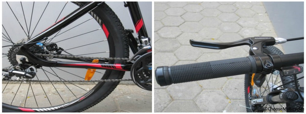 Controlling speeds on an MTB is very important for a hardtail MTB when riding on trails. The gearing components used on a bicycle is directly reflected on the price of the bicycle. The Ridley Trail Fire 1 27.5 217 comes with Shimano Altus at the front and Shimano Acera at the rear. These derailleurs are a mix of entry and midlevel MTB specific gearing. During the test ride the gearing worked perfectly with no lag in gear shifts. I tried rapid shifting when going both uphill and downhill and the transition of gears on the rear derailleur was the same but with a little extra noise while decreasing the gear. But that was nothing to be worried about as it does nto affect the gearing performance in any way. The derailleurs are controlled by a 24 speed Shimano Altus M31 shifters. These shifters were in comfortable reach and were easy to engage.