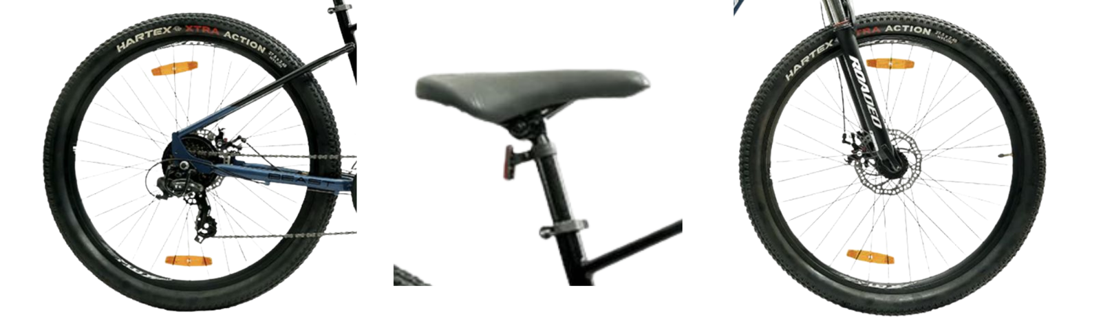 Double-wall alloy rims add durability for everyday abuse. Wide tyres enhance grip on loose and paved surfaces. Wheels roll smoothly while maintaining balance. Saddle cushioning supports longer rides comfortably. Combined setup suits both city and trail riding. Maintenance remains simple and cost-effective.