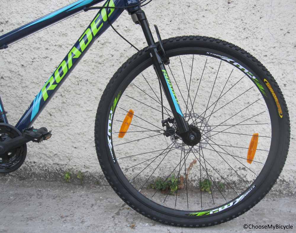 This bicycle which I test rode came in a dark blue frame with light blue and neon green graphics. The gloss finish paint job was of superior quality and had some shine to it. The brand name was represented in a funky way in multiple places on the frame. The flashy design and rugged looking 29’’ tires definitely makes this bicycle look like a full-fledged hardtail MTB.