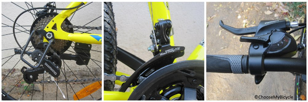 The 21-Speed Shimano Tourney derailleurs along with EF41 shifters were entry level in performance with slight lags.