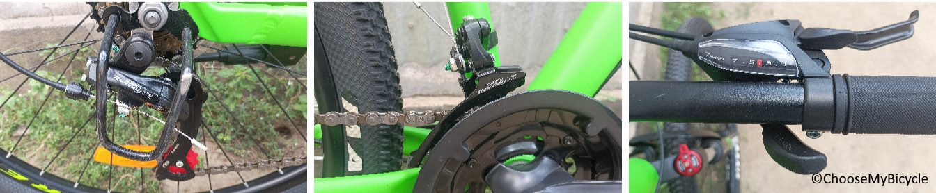 The gearing on the Ascend 27.5 is handled by Shimano Tourney 3-Speed at the front and Shimano Tourney 7-Speed at the rear. This drivetrain also uses a 7-Speed Shimano freewheel which immensely contributes to the smooth gear operation. These gears shifted smoothly and had enough range for climbs and acceleration. The Shimano EF500 21-Speed gear shifters were easy to use.