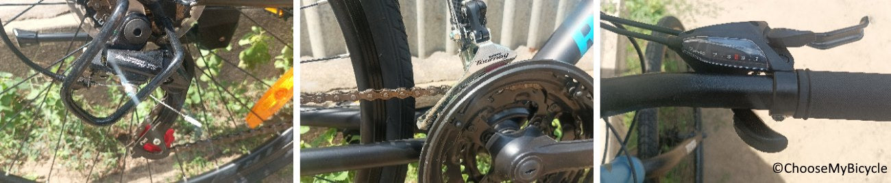 Shimano's 21-Speed Tourney derailleurs were easy to use and smooth in operation on urban roads